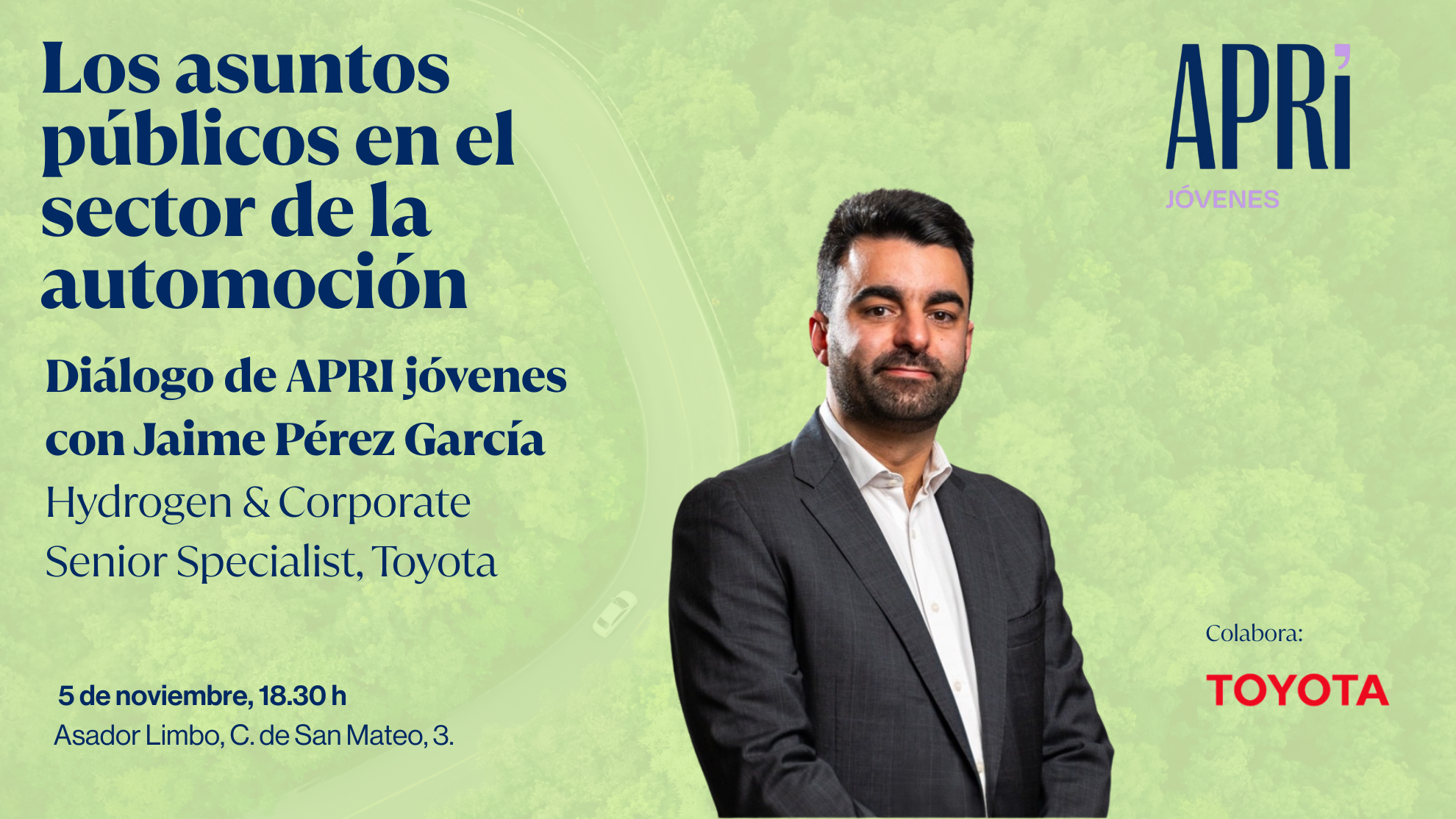 El próximo 5 de noviembre a las 18:30 h, APRI Jóvenes celebrará un nuevo encuentro con Jaime Pérez García, Hydrogen & Corporate Senior Specialist de Toyota.