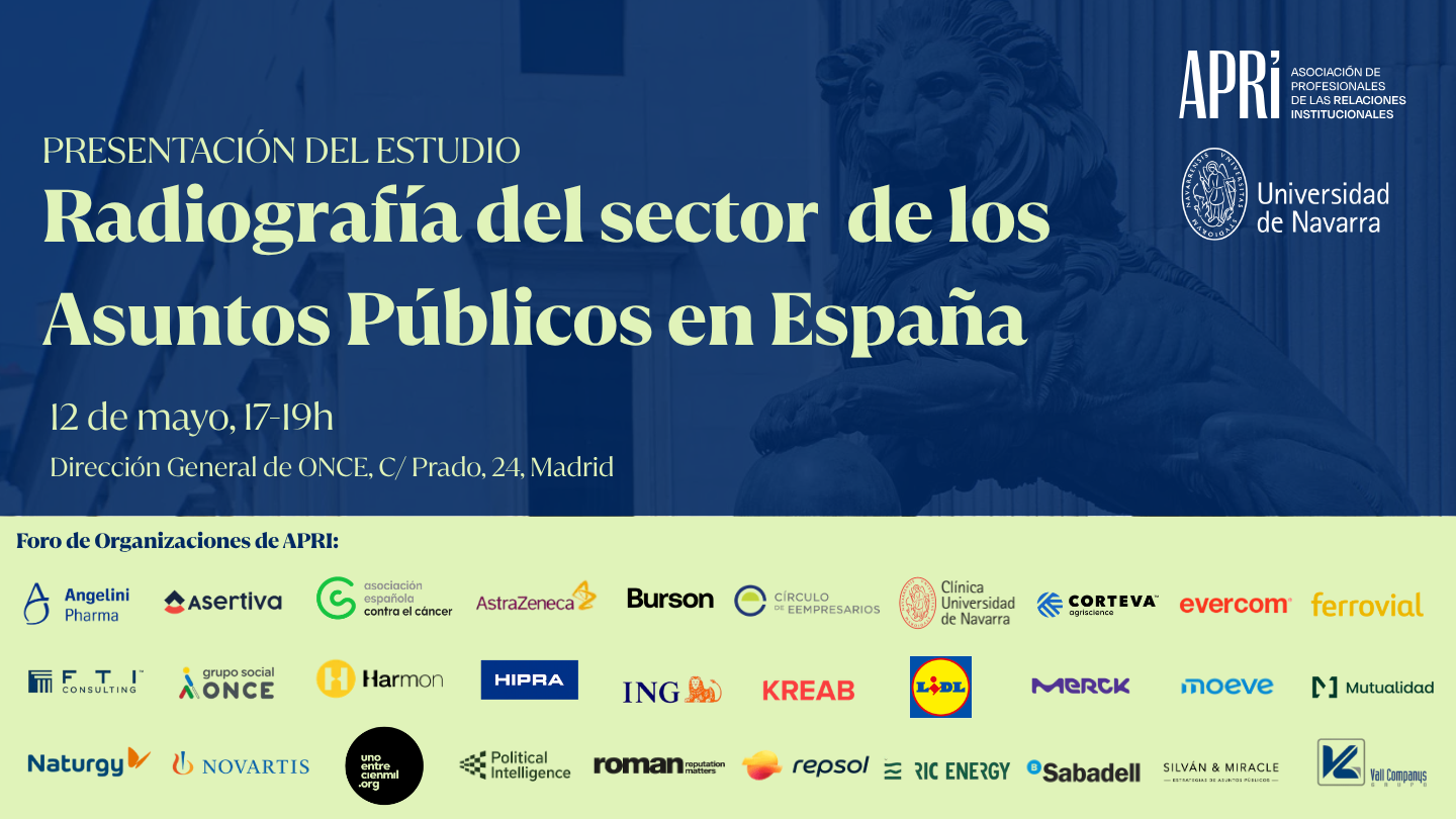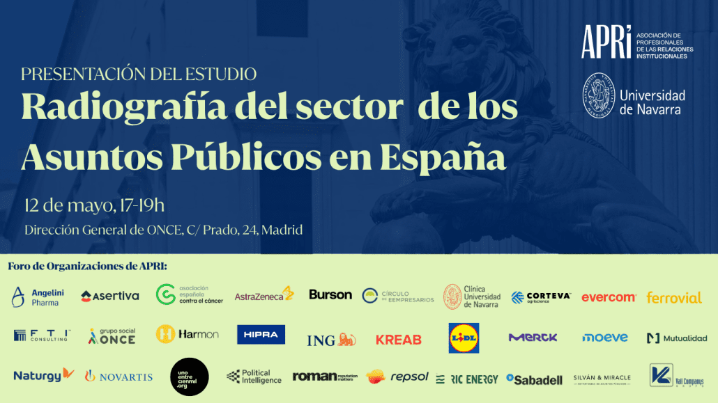 El Observatorio de los Asuntos Públicos en España, formado por APRI y la Universidad de Navarra y posible gracias al impulso de las 30 organizaciones que forman el Foro de Organizaciones de APRI presenta la “Radiografía del sector de los Asuntos Públicos en España”, el mayor estudio sobre la profesión realizado hasta la fecha en nuestro país y una fuente de conocimiento de extraordinario valor para los profesionales del sector y sus stakeholders.