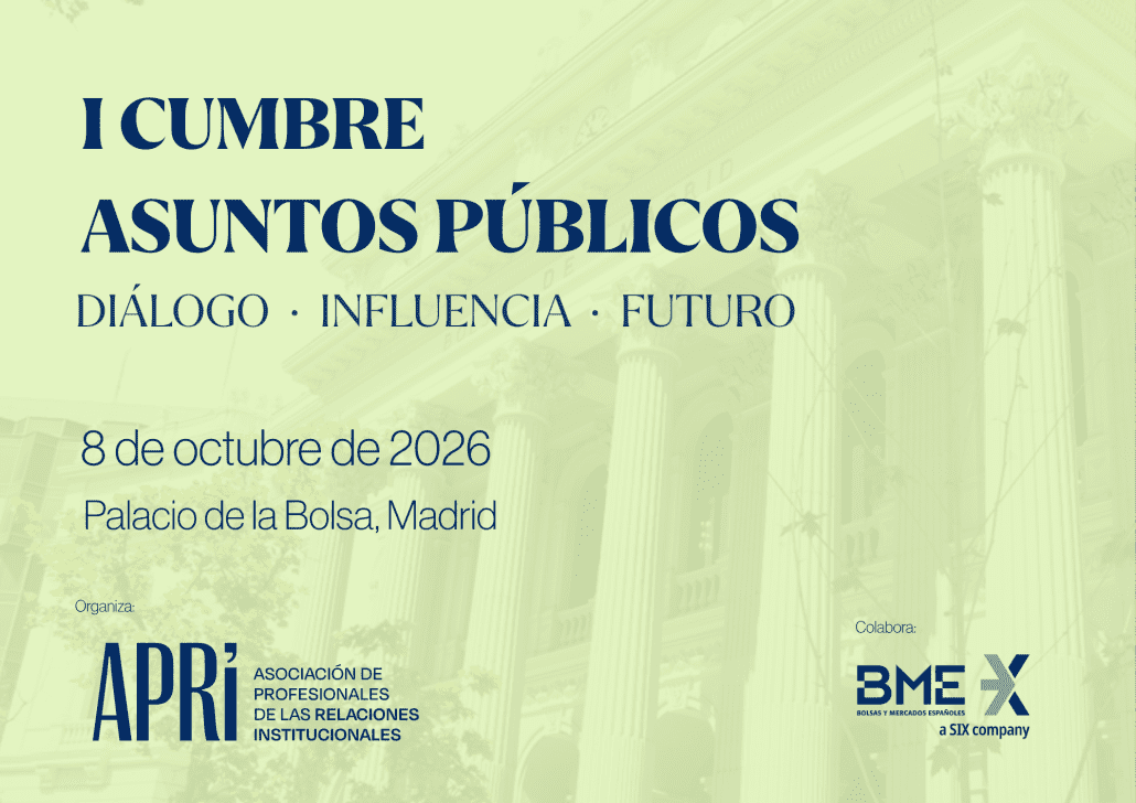 La Asociación de Profesionales de las Relaciones Institucionales (APRI) celebrará el próximo 8 de octubre de 2026, en el Palacio de la Bolsa de Madrid, la I Cumbre de Asuntos Públicos de España, que nace como el principal foro de referencia del sector y como un espacio de encuentro imprescindible para los profesionales de los asuntos públicos y las relaciones institucionales de nuestro país.